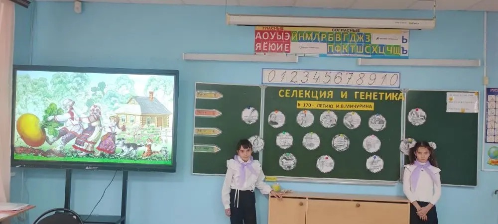 10 ноября прошло познавательное занятие из цикла «Разговоры о важном». Оно было посвящено селекции, генетике и 170-летию со дня рождения выдающегося российского ученого-селекционера Ивана Владимировича Мичурина.Школьники отправились в увлекательное путешествие по современным лабораториям, где выводятся новые сорта фруктов и овощей. В ходе занятия они узнали, кто такие ученые-селекционеры и каким образом они помогают растениям становиться вкуснее, крупнее и устойчивее к холодам, чем прославился И.В. Мичурин и что его открытиями гордится вся страна. Занятие сопровождалось красочной презентацией, видеороликами и интерактивной викториной, в которой дети сами пытались угадать предков современных растений. В заключительной части беседы ребята обсудили, как важно бережно относиться к природе и заботиться о ней.