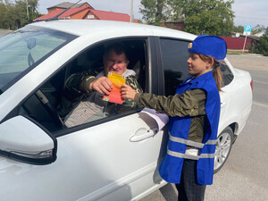 В завершении мероприятия ребятам приклеили на рюкзаки светоотражающие смайлики.