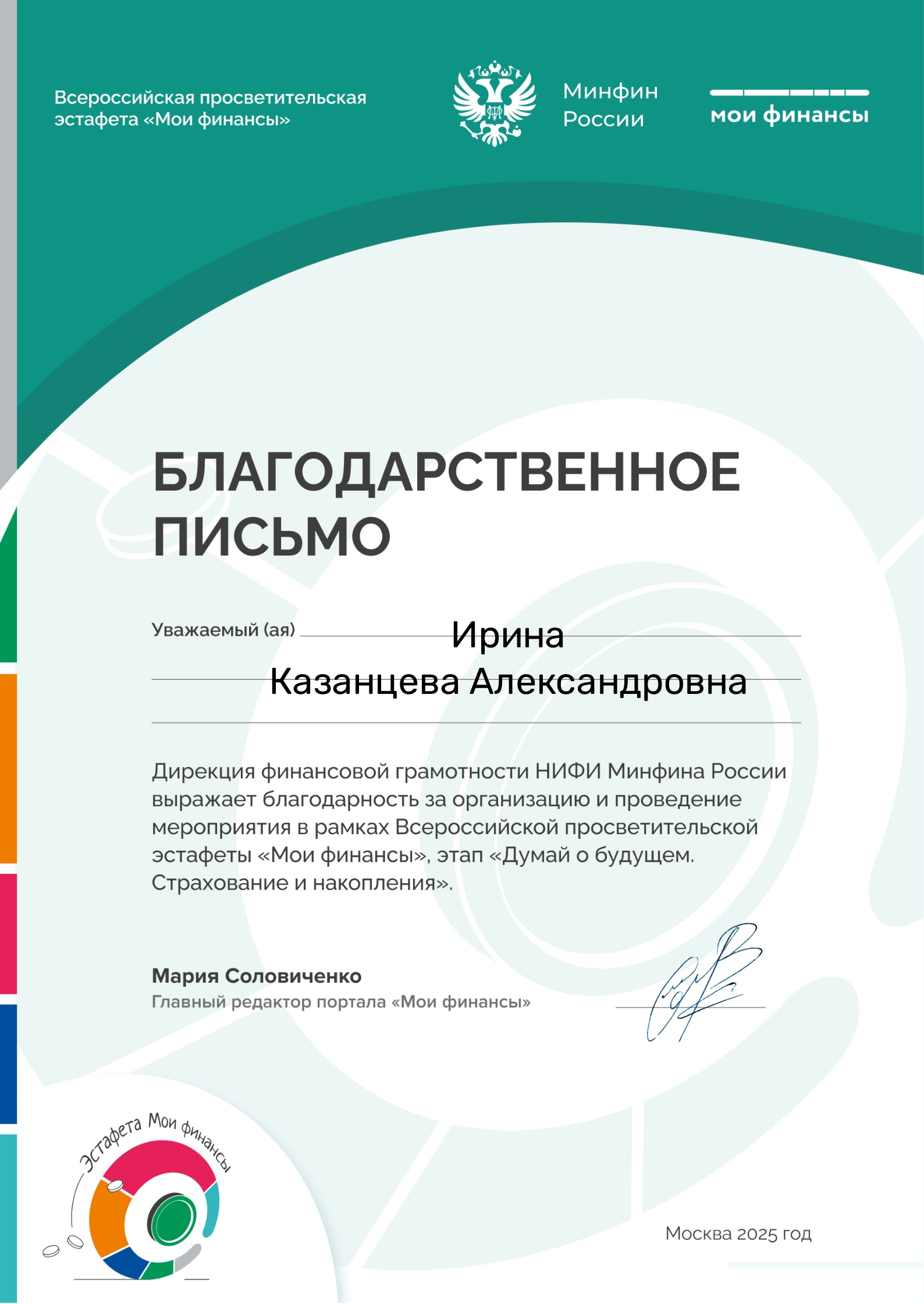 Апаринская школа. 13.10.25 - Продолжаем участвовать! Этап VI: «Думай о будущем: страхование и накопления»