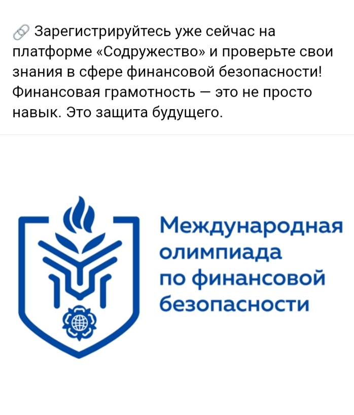 2 февраля на платформе «Содружество» стартовал пригласительный этап VI Международной олимпиады по финансовой безопасности. Принять участие и проверить свои знания в финансовой безопасности может каждый: школьники, студенты, родители, преподаватели и эксперты. Школьные задания выполняются на русском, а студенческие — на нескольких языках: русском, английском, арабском, испанском, китайском и французском.