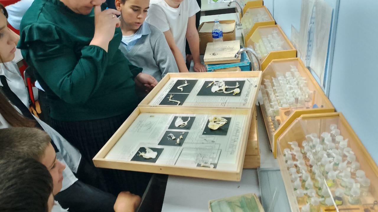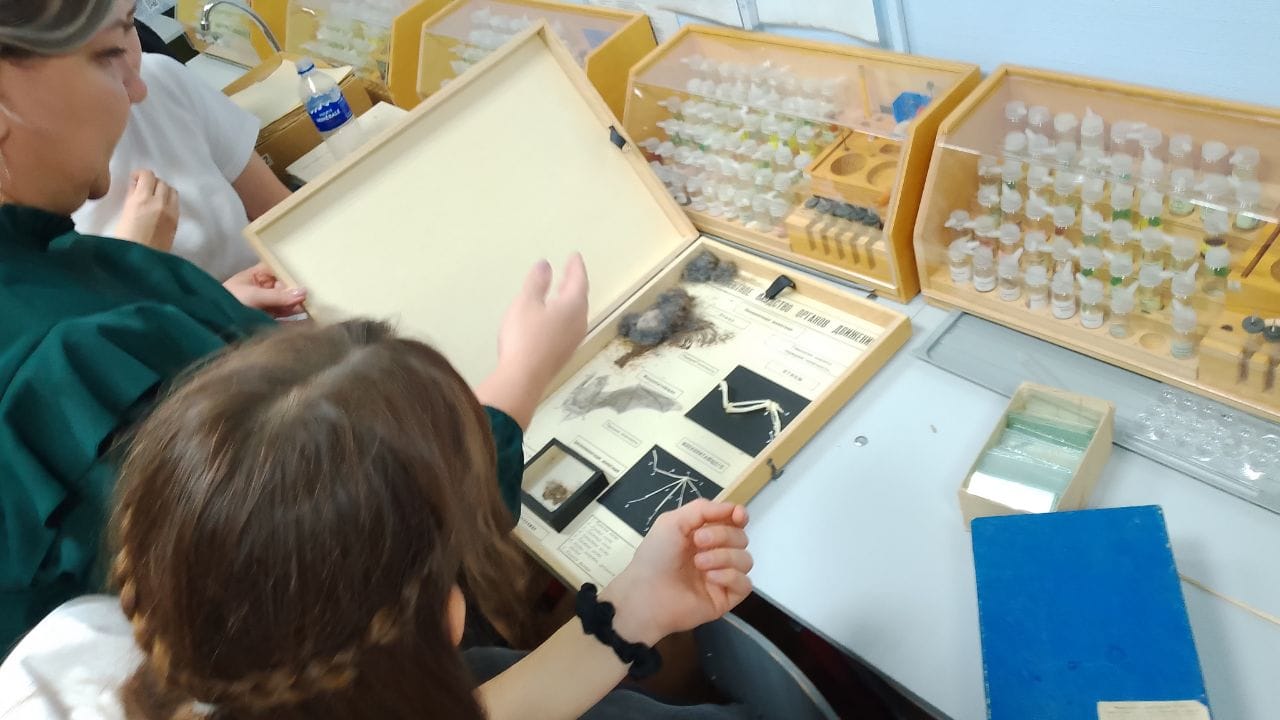 На базе центра развития "Точка роста" на уроке биологии в восьмом классе учащиеся выполнили практическую работу "Ознакомление с органами опоры и передвижения"