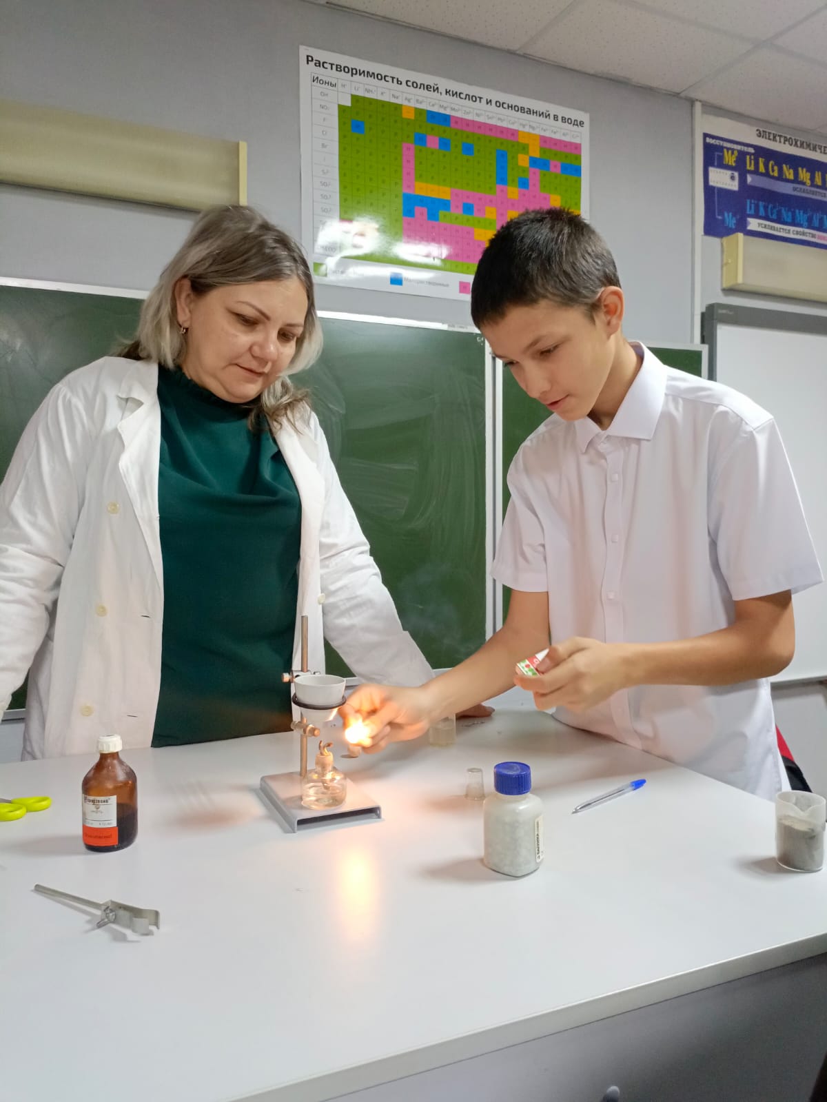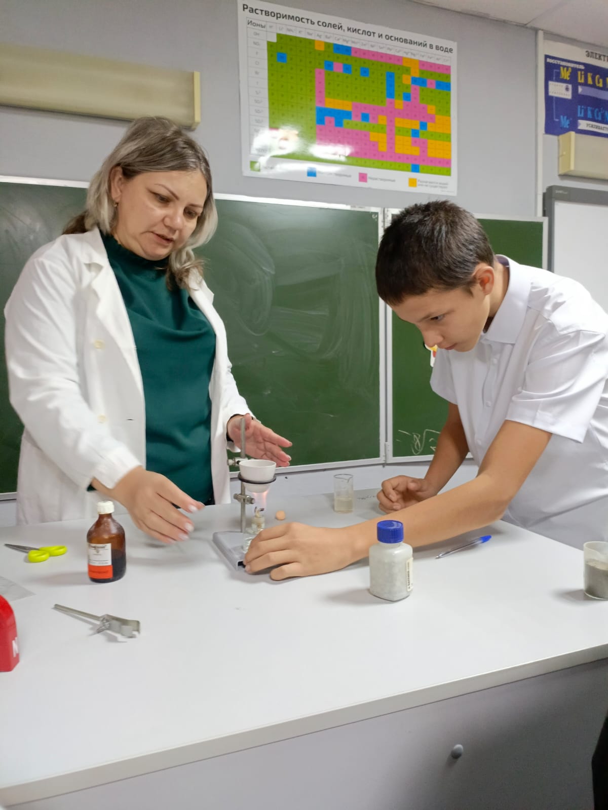 На базе центра развития "Точка роста" на уроке химии в восьмом классе учащиеся выполнили лабораторную работу "Разделение смесей "